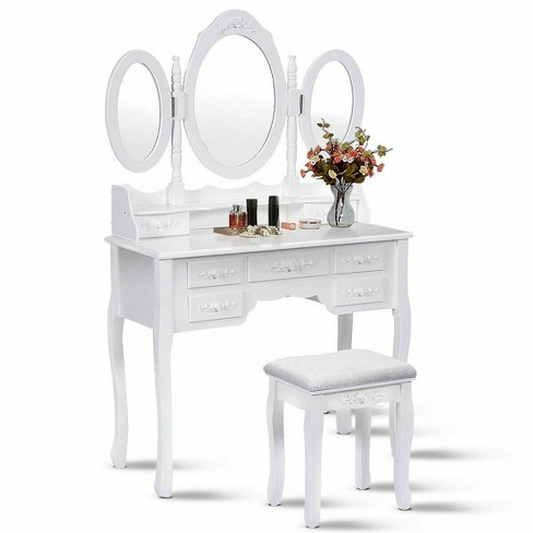 1 from Collete dressing vanity with mirror. This makeup dressing table and stool set, with a beautiful and traditional style, is a perfect choice for any room. Vanity set with bench and 360° rotating rectangular mirror. Vanities can provide a lot of storage for all your makeup, brushes, perfumes and other beauty products. Organize your vanity drawers by introducing dividers. White dressing table vanity makeup desk with 4 drawers mirror set and stool. 35.5 x 15.8 x 57 in. Recycle your shoe boxes to something beautiful and useful thanks for watching :) follow me @readyfordiy on instagram , twitter & facebook music: